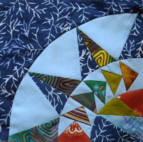 12) Das ist ein schreigrüner Blusenstoff, auch vom Markt, der war auch schon in meinem ersten Quilt vorhanden.